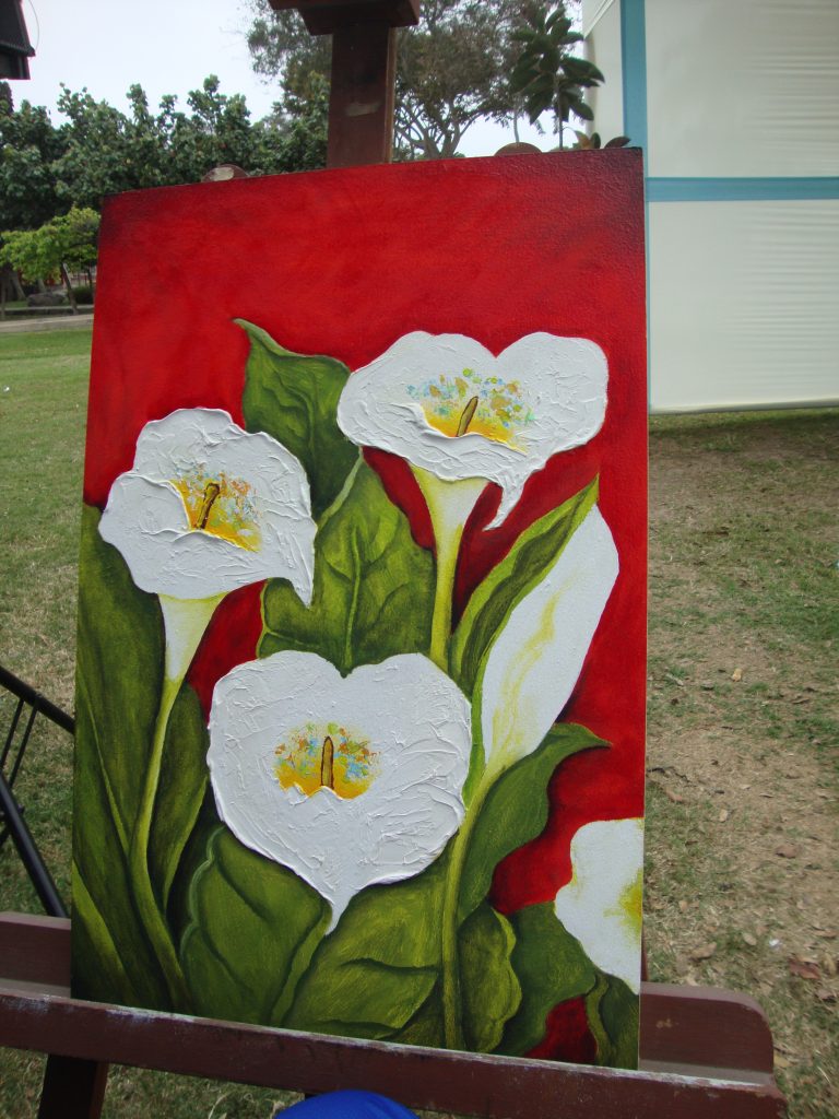Soy autista y hago una pintura de calas con textura, pintando en vivo en la Pontificia Universidad Católica del Perú, en una exposición artística inclusiva.