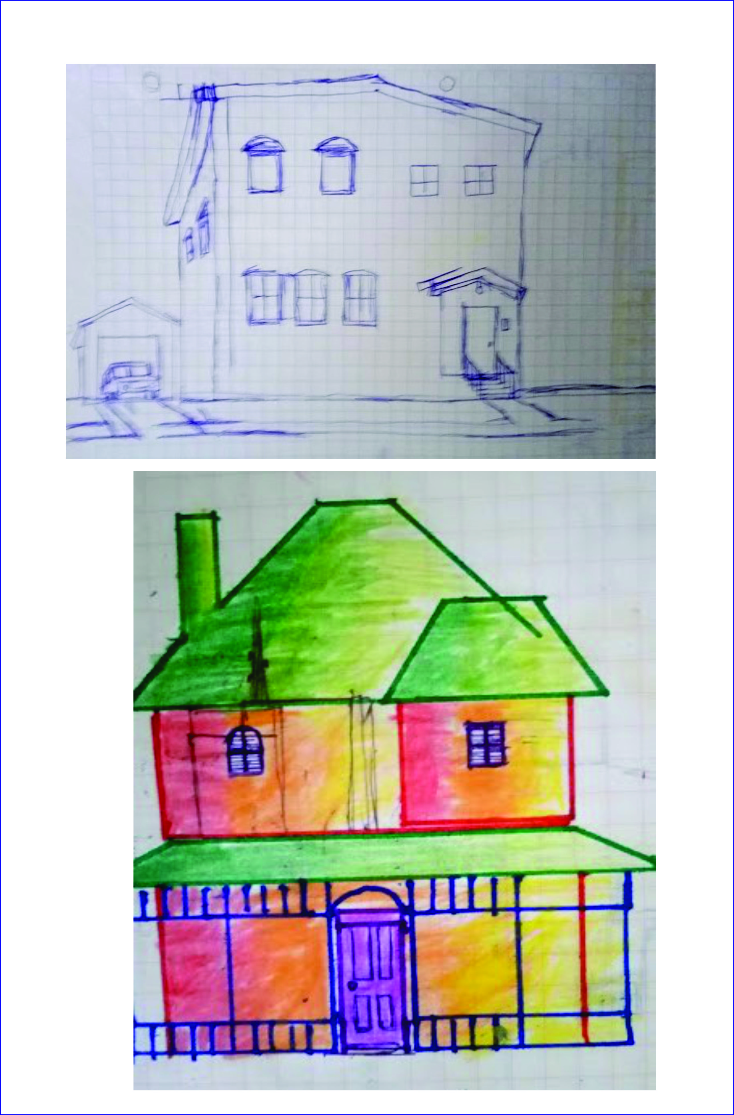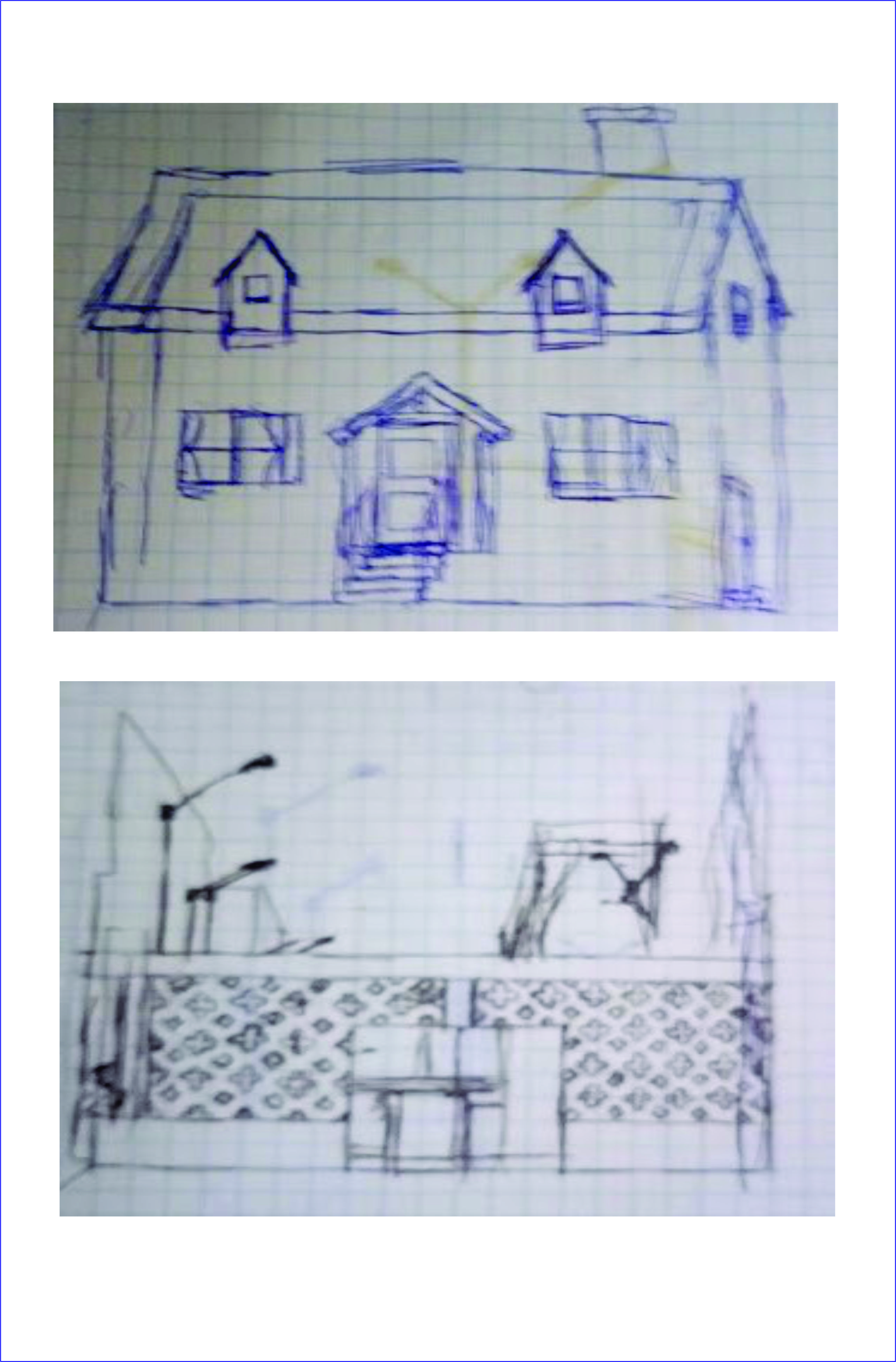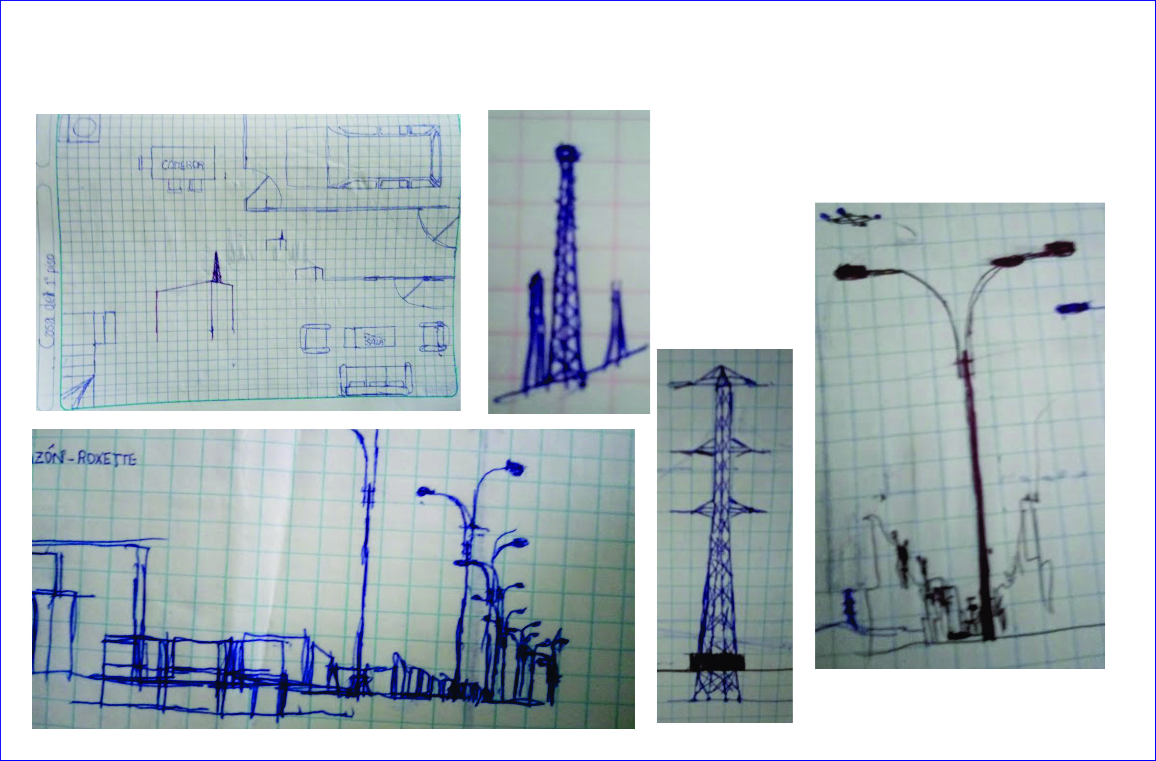 Así empezó el arte en mi hijo, comenzó a dibujar y sombrear en lapicero las propagandas de la Tv, así como de los dibujos animados como los padrinos mágicos y mounsters house. Y en las trayectorias que hacíamos cuando íbamos a visitar a algún familiar, dibujaba por ejemplo, las torres de alta tensión que se veían en lo alto de los cerros, y la casa que se encontraban al pie de estos, tanto en la Panamericana Norte como camino al sur, casas a las lejanías, cerca de nuestra casa pasábamos por el bypass de la Av. Habich, en Lima – Perú, entre muchos bocetos o dibujos que aún los conserva hasta la actualidad.